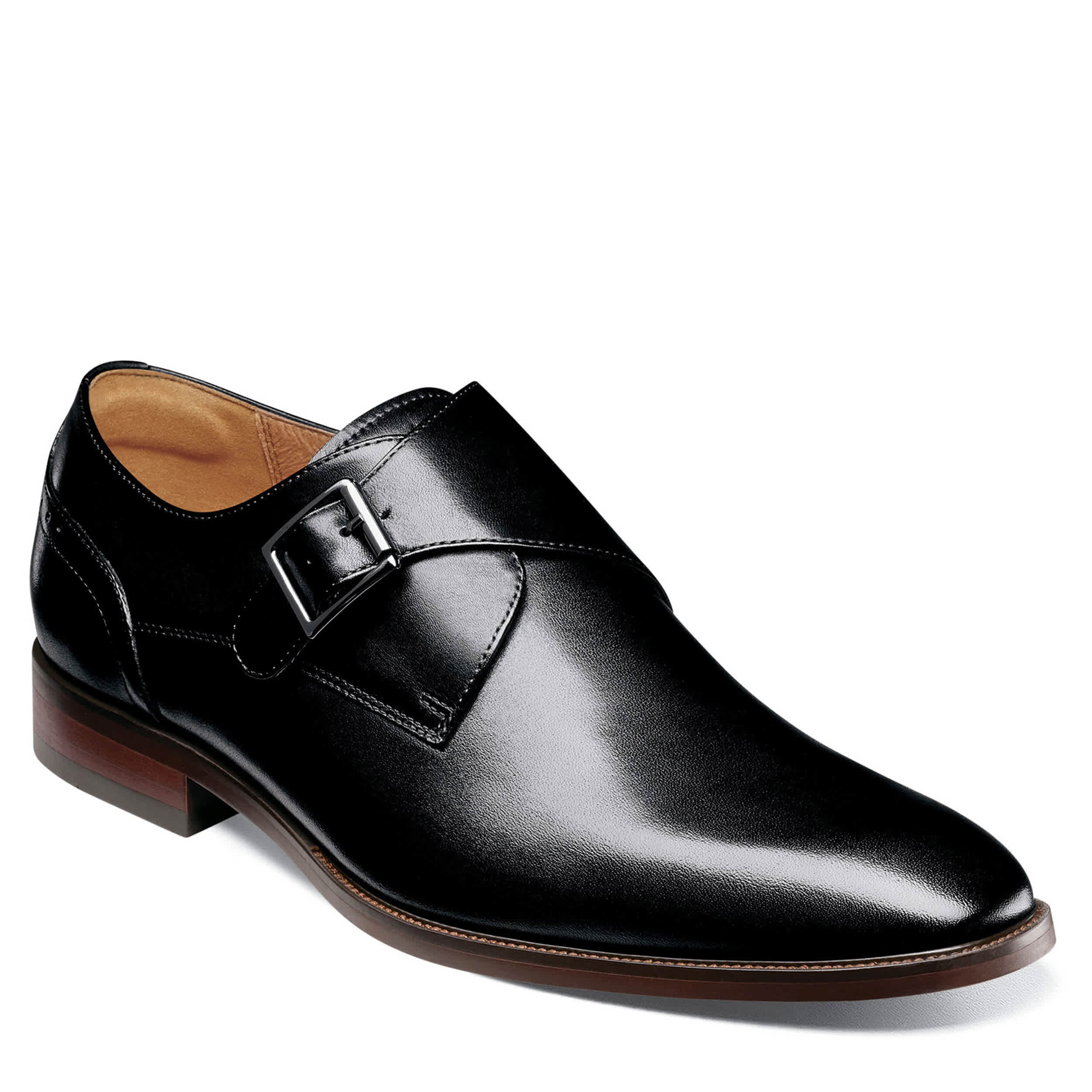 Amplify your handsome in the Florsheim Sorrento Plain Toe men's dress shoe. With a leather upper and monk strap buckle, this slip-on dress shoe cuts quite the dashing figure. The cushioned footbed and synthetic outsole supplies comfort and stability while you put your best foot forward.