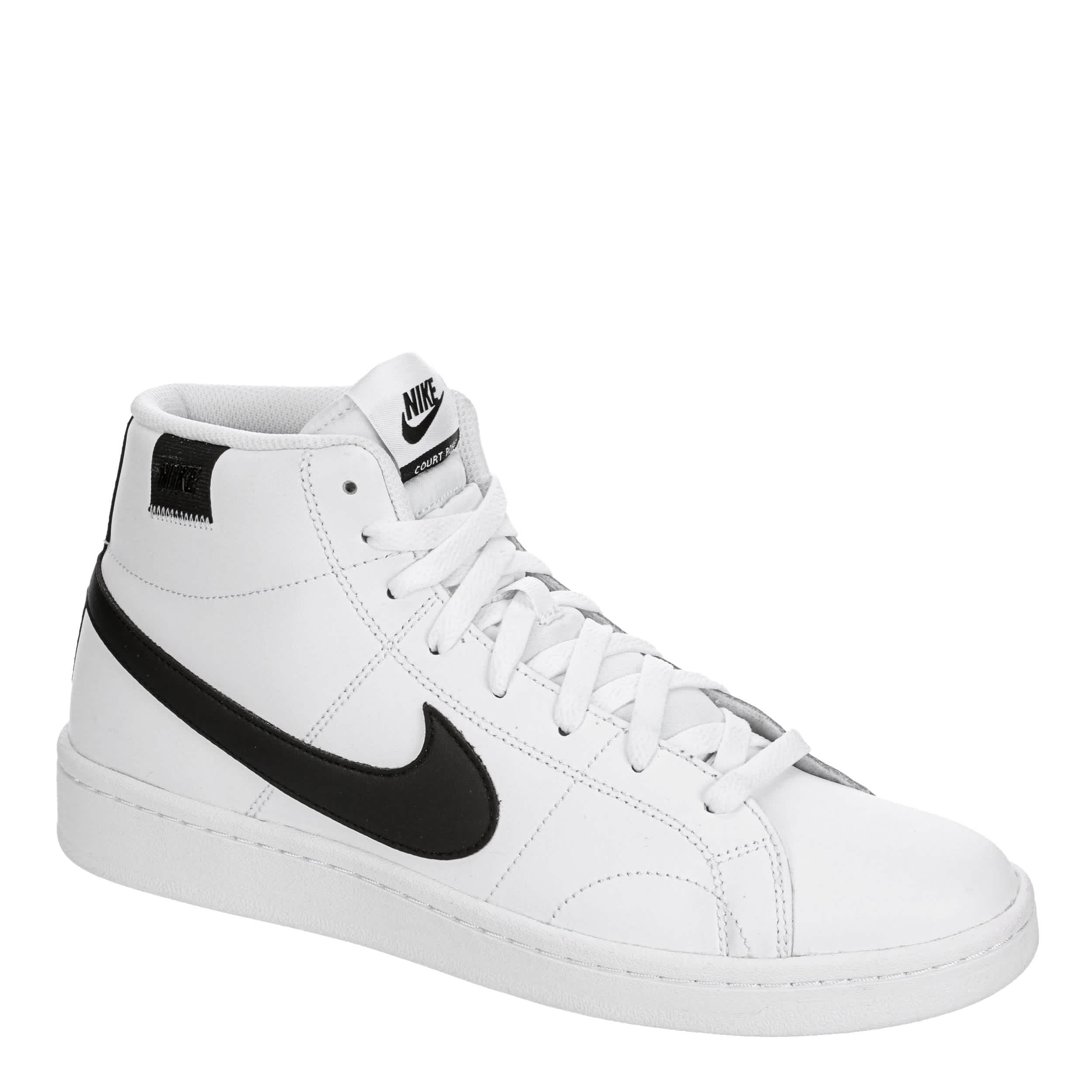 Keep up the fashionable expression, no matter how casual the outfit with the Nike Court Royale 2 Mid men's sneaker. With a faux leather upper and high-top design, this lace-up sneaker offers a padded collar & tongue alongside a breathable mesh lining for long-lasting support. The cushioned footbed and traction outsole make them easy to wear along with the eye-catching contrast Nike swoosh and heel patch.