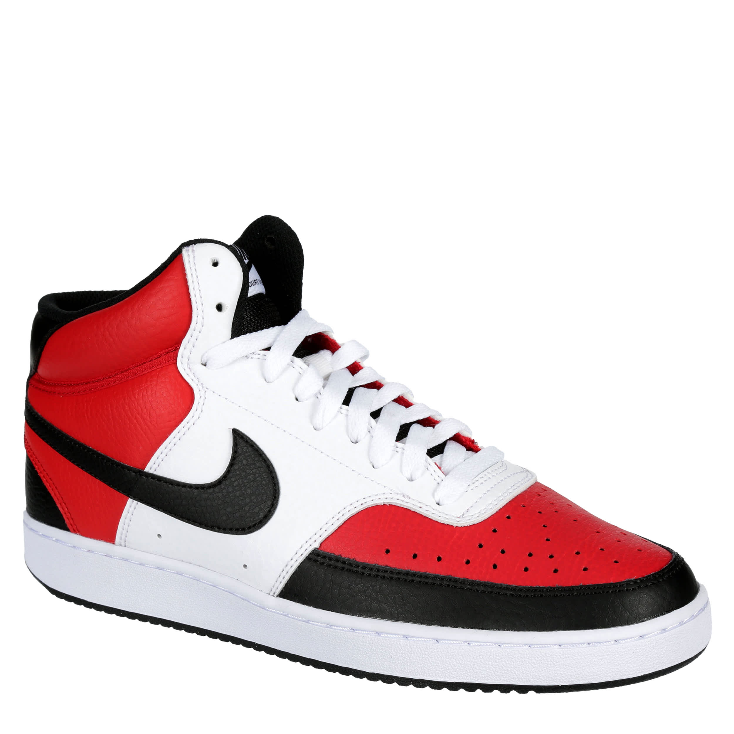 The Court Vision Hi from Nike keeps the combination of retro construction and modern performance going with its classic construct for men. It's a call back to the 80s with the perforated leather upper and deep traction outsole. The nike swoosh keeps the classic vibe going.